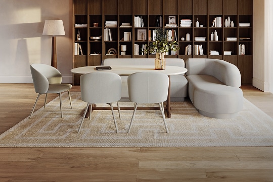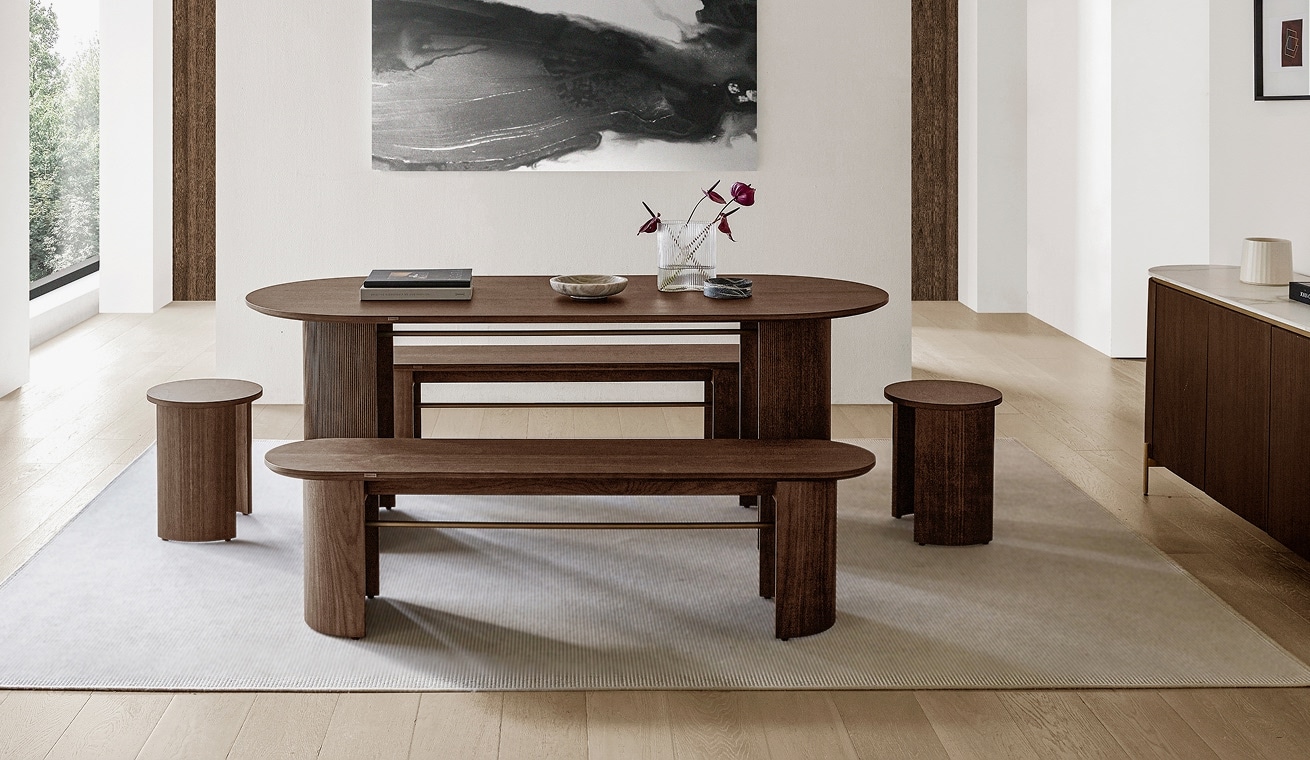 포멜로 세라믹식탁 4인세트 160cm 내추럴_벤치1100 1EA, 패브릭체어2EA