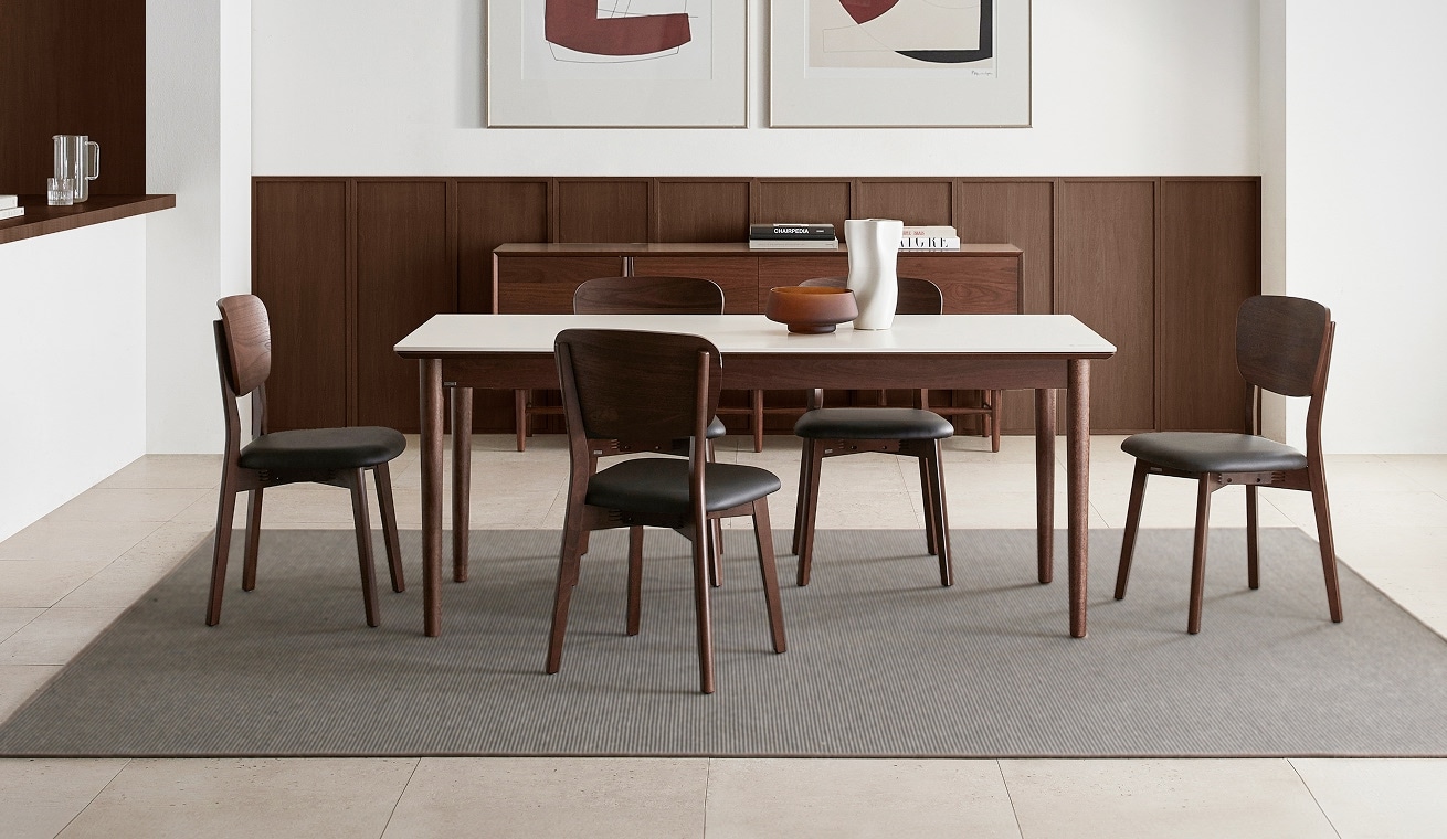 포멜로 세라믹식탁 4인세트 160cm 브라운_가죽체어 4EA (옵션 택1)